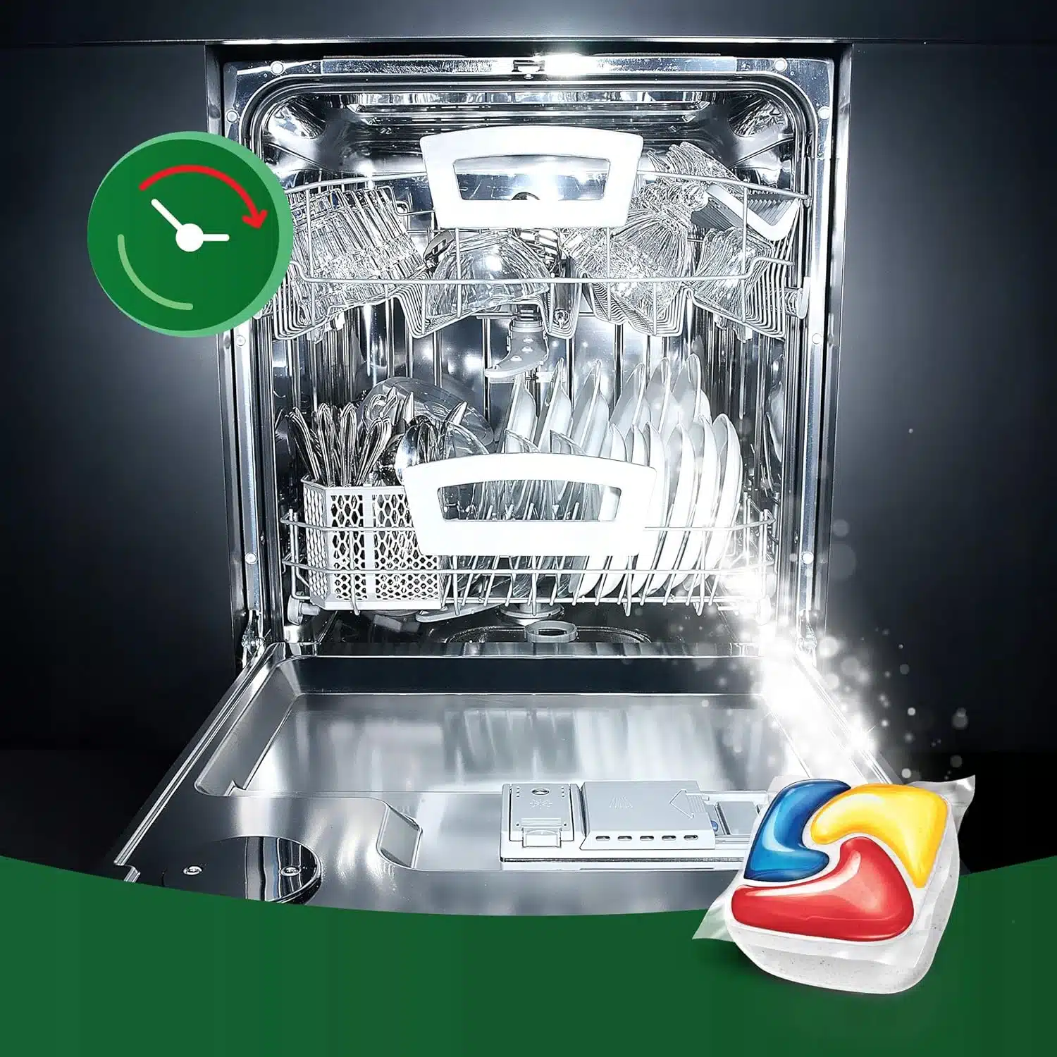 قدرت پاک‌کنندگی فوق‌العاده، بازگرداندن درخشندگی ظروف کدر شده، عملکرد عالی در چرخه‌های کوتاه و…