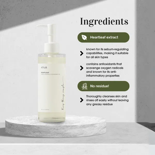 آنوا با تمرکز بر استفاده از عصاره Heartleaf (برگ قلبی)، این روغن را با خواص تسکیندهنده و ضد التهابی غنی کرده است. این ویژگی باعث میشود که محصول برای پوستهای حساس یا مستعد آکنه نیز مناسب باشد، زیرا به آرامش پوست و کاهش قرمزی کمک میکند.