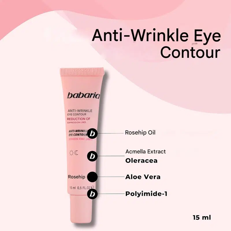 سرم دور چشم ضد چروک باباریا مدل Rosa Mosqueta - حاوی روغن گل رز | حجم 15 میلیلیتر