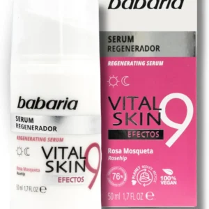 سرم 9 کاره Babaria Vital Skin محصولی چندمنظوره و پیشرفته از برند معتبر باباریا اسپانیا است که با بهرهگیری از خواص بینظیر عصاره گل رز و ترکیبات فعال نوآورانه، بهطور همزمان 9 نیاز اساسی پوست را برطرف میکند. این سرم با فرمولاسیون سبک و جذب سریع، مناسب انواع پوست بهویژه پوستهای کدر، کمآب و مستعد علائم پیری طراحی شده است.