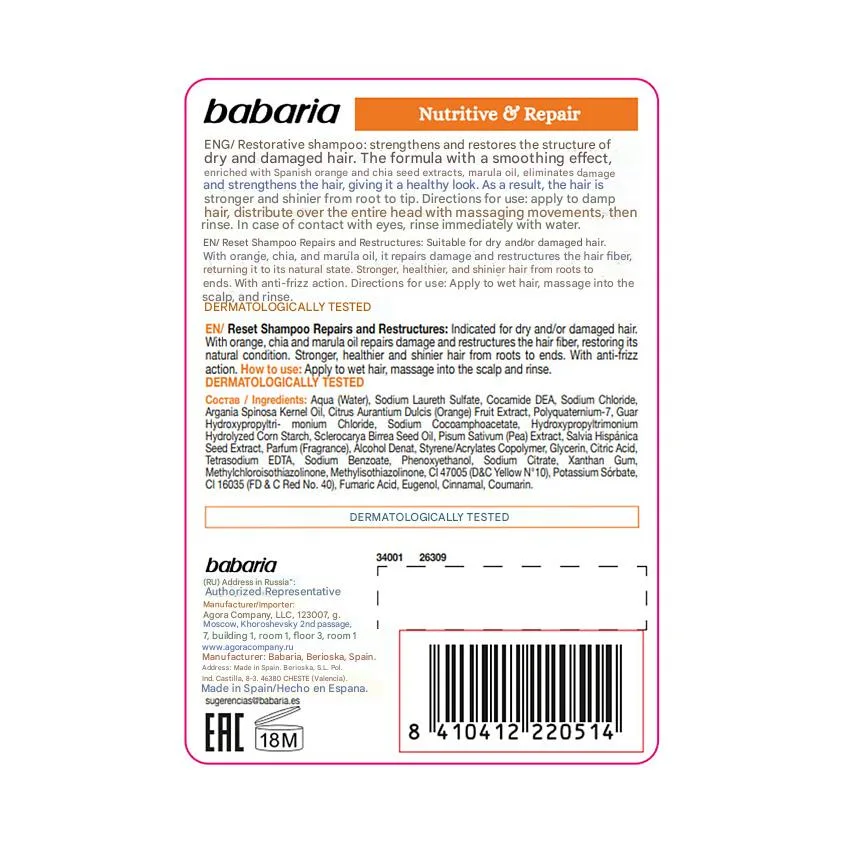 این شامپو مناسب چه نوع موهایی است؟ شامپو Babaria Nutritive & Repair Reset برای موهای خشک، آسیبدیده، شکننده و رنگشده طراحی شده و میتواند موهای معمولی را نیز نرم و درخشان کند.