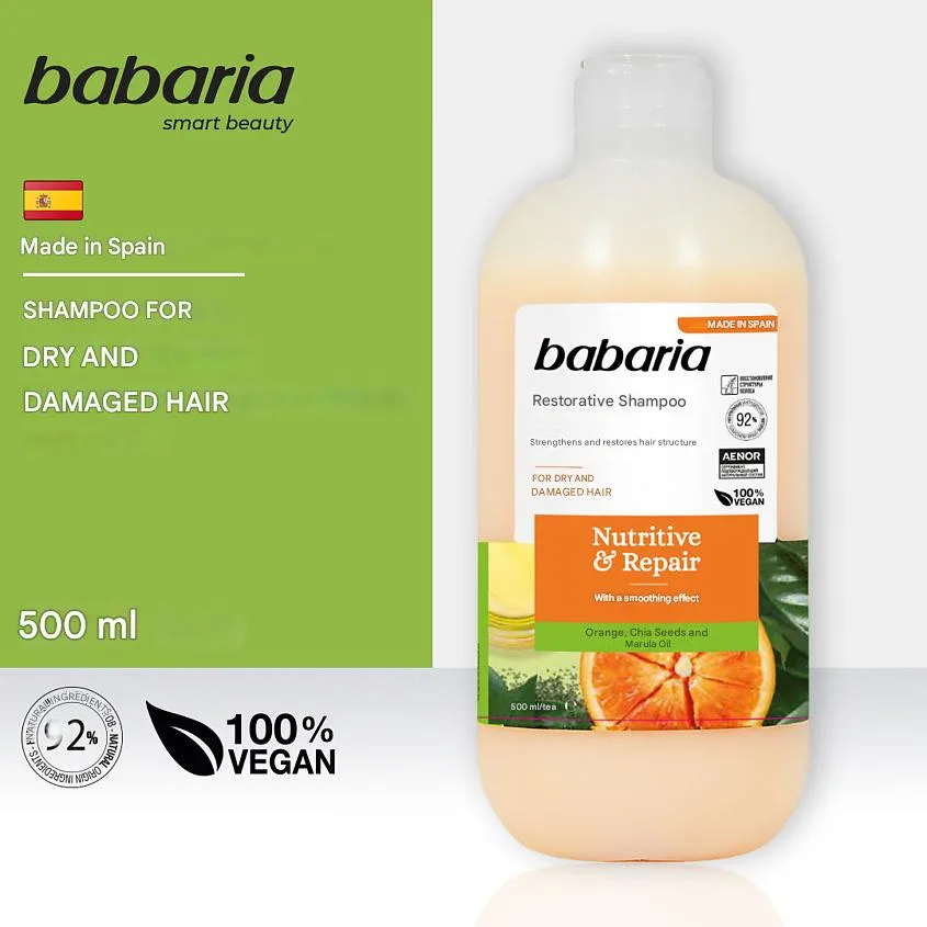 شامپو مغذی و ترمیم کننده مو باباریا مدل Nutritive & Repair | حجم 500 میلیلیتر