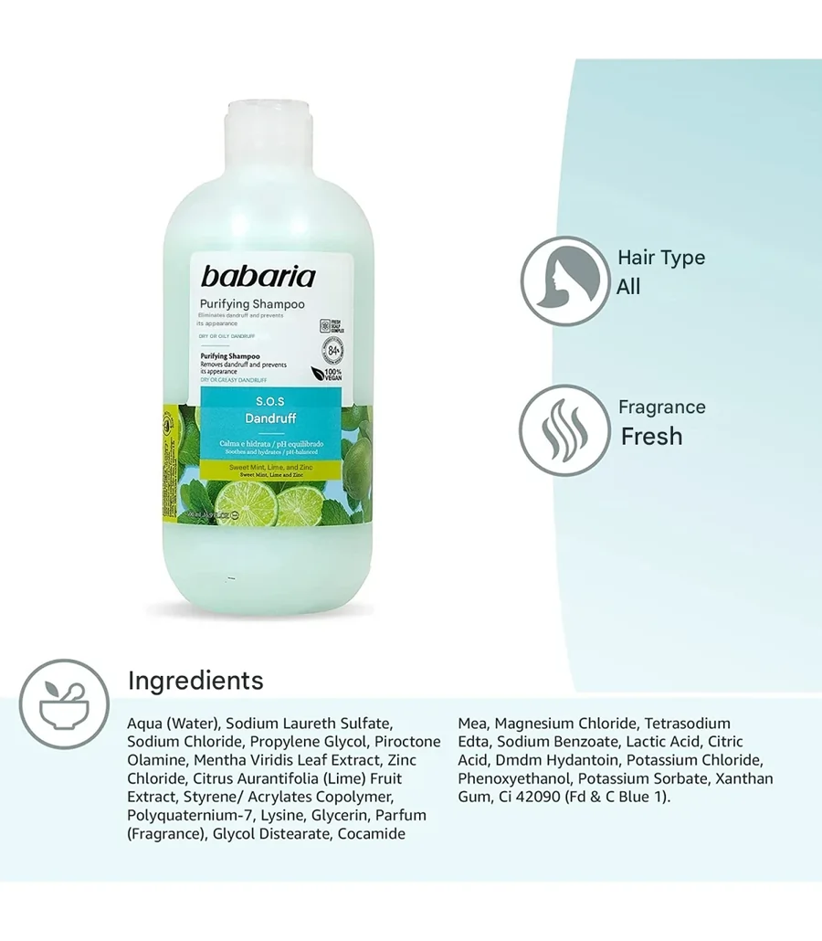 شامپوی Babaria S.O.S Dandruff Purifying با حجم 500 میلیلیتر، محصولی از برند معتبر اسپانیایی باباریا است که بهطور تخصصی برای رفع و پیشگیری از شورههای خشک و چرب طراحی شده است. این شامپو با بهرهگیری از ترکیبات گیاهی و فناوری نوآورانه، پوست سر را بهطور عمقی پاکسازی کرده و ضمن کاهش خارش و پوستهریزی، طراوت و شادابی را به موها بازمیگرداند.✨ ویژگیها و مزایا