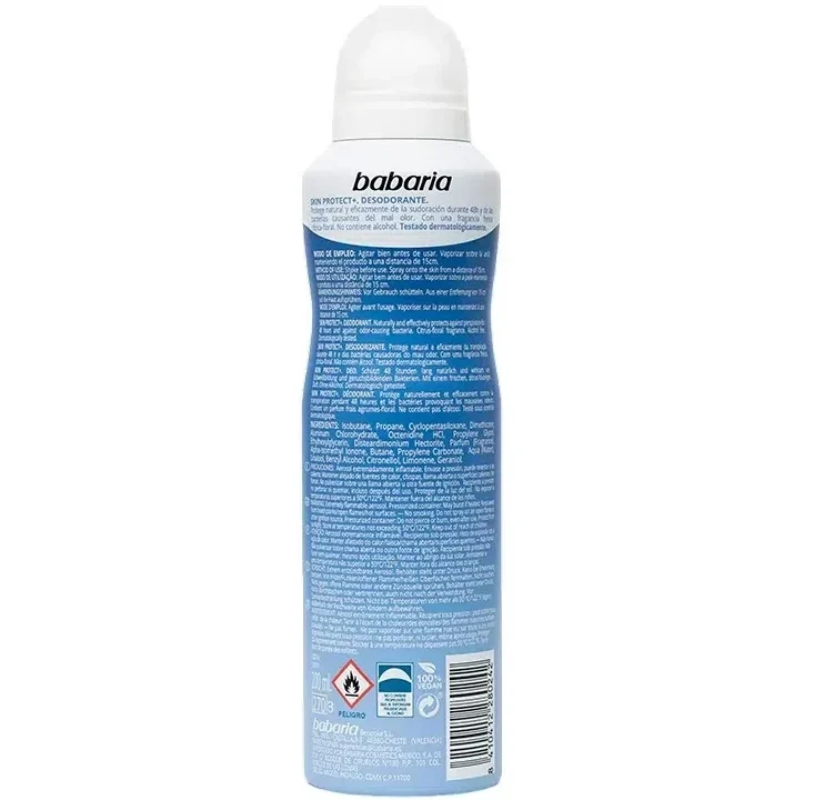 اسپری دئودورانت +Skin Protect از برند معتبر اسپانیایی Babaria، ترکیبی ایدهآل از محافظت مؤثر، رایحهای مطبوع و مراقبت از پوست است. این محصول با عملکرد دوگانهی ضدتعریق و ضدباکتریال، تا 48 ساعت از ایجاد بوی نامطبوع جلوگیری کرده و حس تازگی و پاکیزگی را در طول روز حفظ مینماید.