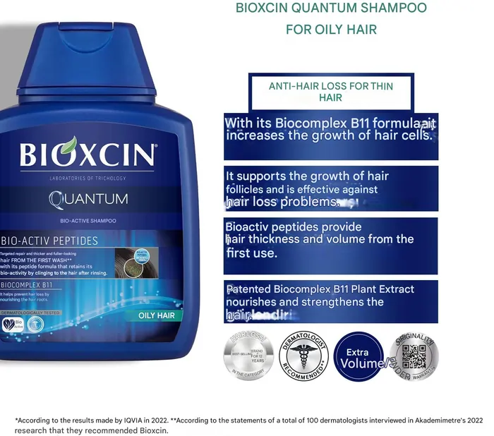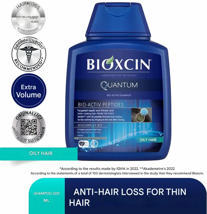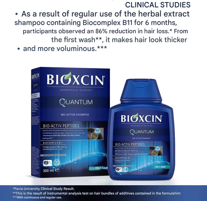 شامپو ضد ریزش و تقویت کننده مو بیوکسین Bioxcin مدل Quantum – مناسب موهای چرب | پک 3 عددی 300 میلیلیتری