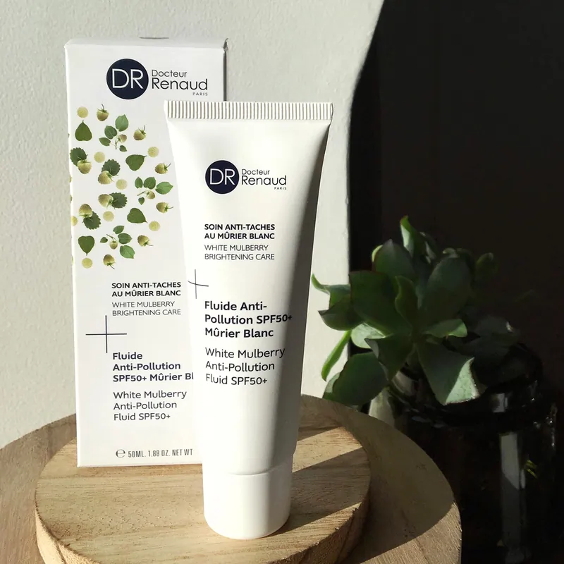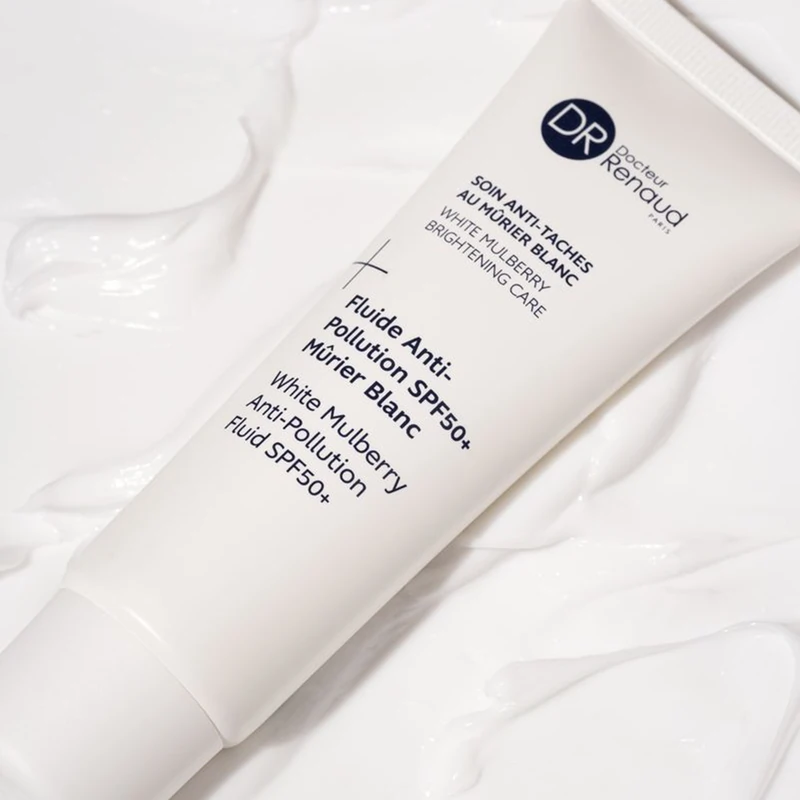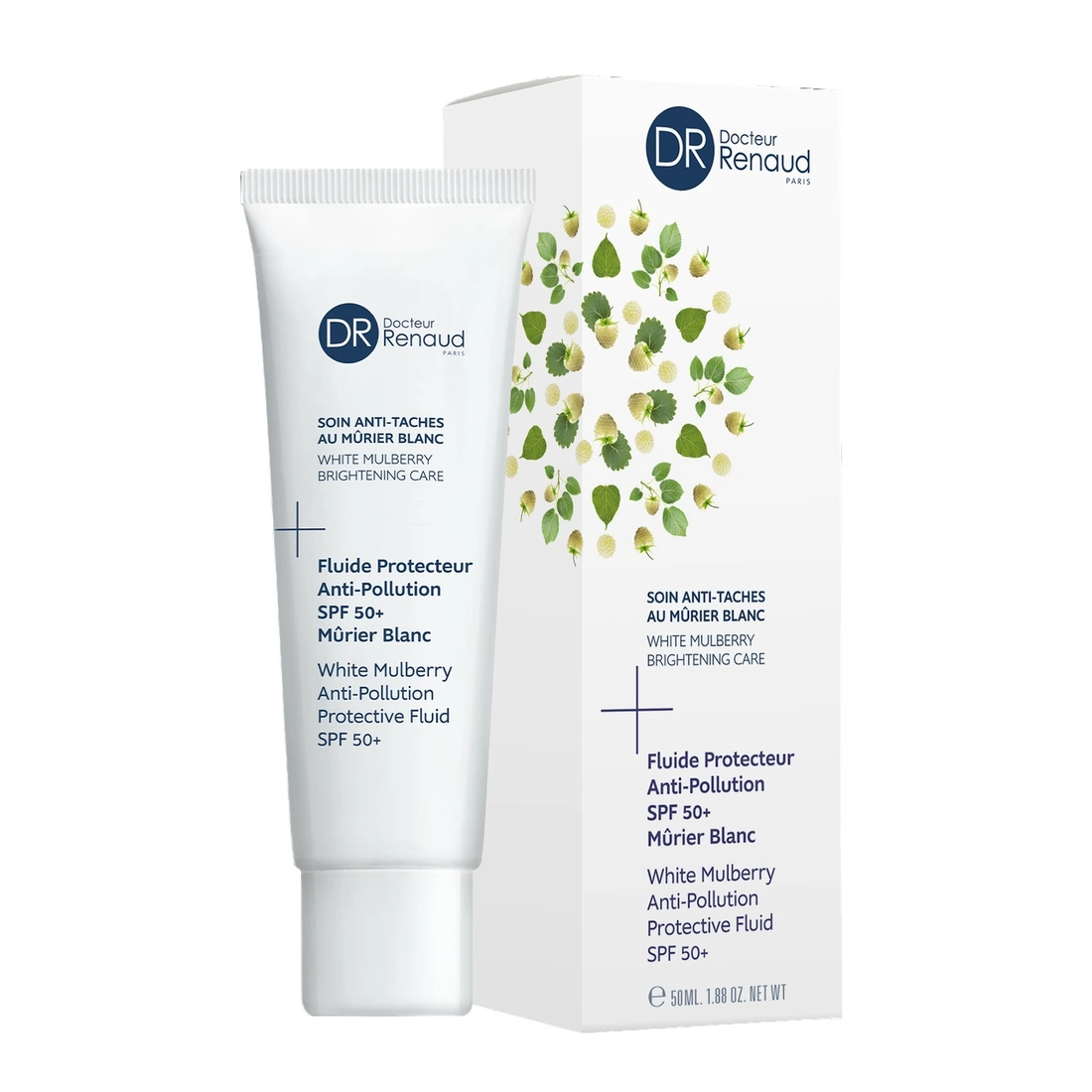 فلوئید محافظتی ضد آلودگی و ضد آفتاب دکتر رناد Dr. Renaud مدل White Mulberry - با +SPF 50 و حاوی عصاره توت سفید | حجم 50 میلیلیتر