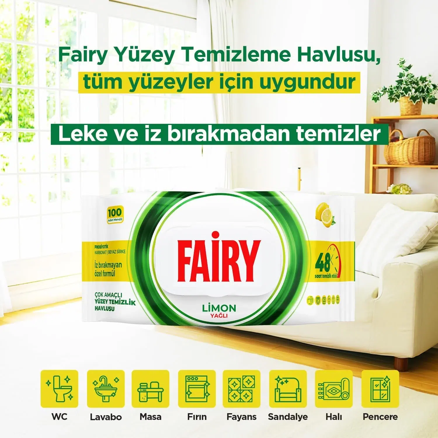 Fairy Limon Yağlı Çok Amaçlı Yüzey Temizlik Havlusu 100 Yaprak
