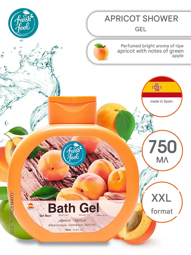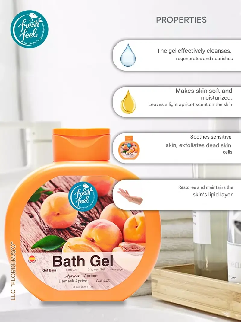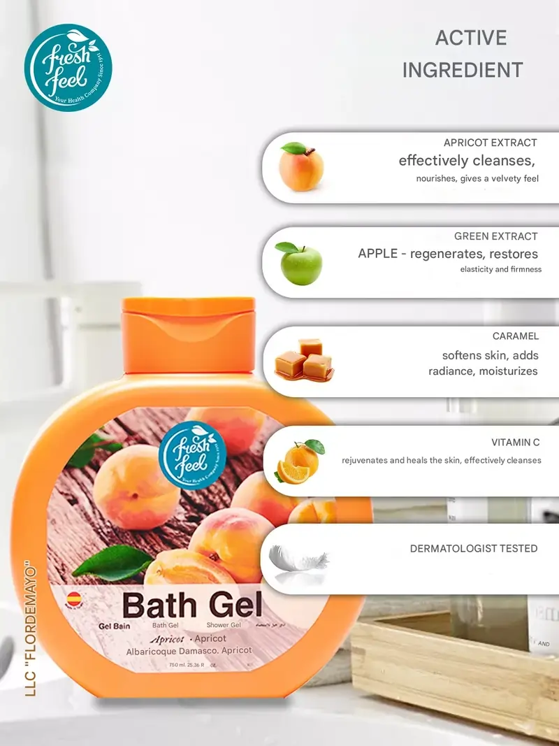شامپو ژل حمام زردآلو فرش فیل Fresh Feel مدل Apricot | حجم 750 میلیلیتر