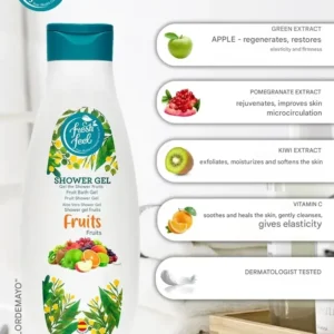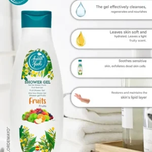 ژل دوش فرش فیل با رایحه میوههای تازه، محصولی از برند اسپانیایی Fresh Feel است که با هدف ارائه تجربهای لوکس و مراقبتی برای پوست طراحی شده است. این ژل دوش با فرمولاسیون حاوی عصارههای میوهای، ویتامین E و مرطوبکنندههای طبیعی، ضمن پاکسازی ملایم پوست، لطافت و حس تازگی ایجاد میکند. حجم 750 میلیلیتر آن مصرف طولانیمدت را ممکن میسازد و برای استفاده روزانه طراحی شده است.