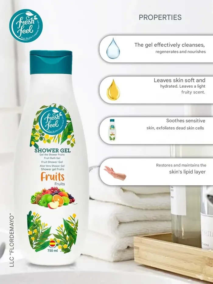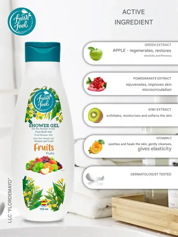 شامپو ژل حمام میوهای فرش فیل Fresh Feel مدل Fruits | حجم 750 میلیلیتر