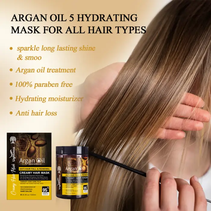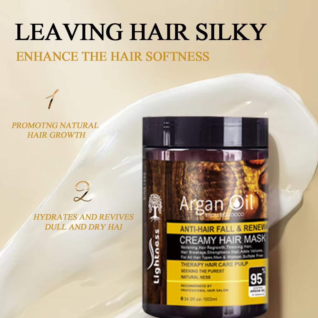 ماسک موی کرمی لایتنس Lightness مدل Argan Oil - حاوی روغن آرگان و پروتئین - ضدریزش و بازسازی عمیق | حجم 1000 میلیلیتر