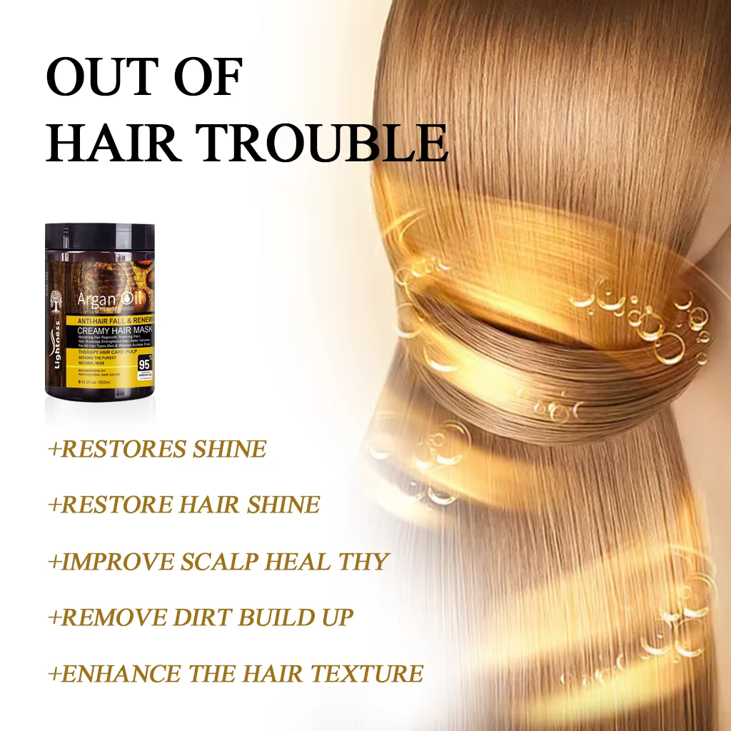ماسک موی کرمی لایتنس Lightness مدل Argan Oil – حاوی روغن آرگان و پروتئین – ضدریزش و بازسازی عمیق | حجم 1000 میلیلیتر