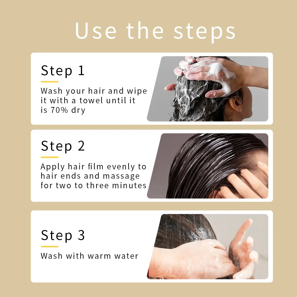 - موها را با شامپو شسته و آبکشی کنید.