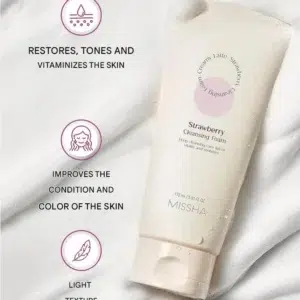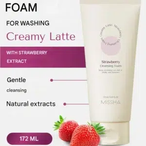 این کرم فومی توتفرنگی یک پاککنندهی صورت کرمی و غلیظ از برند معتبر میشا (Missha) کره جنوبی است. این محصول بافت فومی لطیف و کرمی دارد که بهآسانی روی پوست پخش شده و آلودگیها، چربی اضافه و آرایش باقیمانده را بهخوبی پاک میکند.