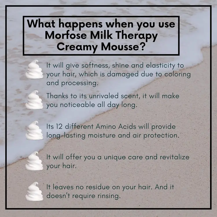 موس کرمی مو مورفوس Morfose مدل Milk Therapy با حجم 350 میلیلیتر، یک محصول حرفهای و چندمنظوره برای موهای خشک، آسیبدیده و رنگشده است که با ترکیبات مغذی، آمینواسیدها و پروتئین شیر موها را بازسازی، تغذیه و درخشان میکند.با استفاده روزانه، موها نرم، لطیف و کشسان میشوند و از آسیبهای حرارتی محافظت میشوند. این موس مناسب کسانی است که به سلامت و زیبایی طبیعی موهای خود اهمیت میدهند و میخواهند ظاهری مرتب، درخشان و سالم داشته باشند.