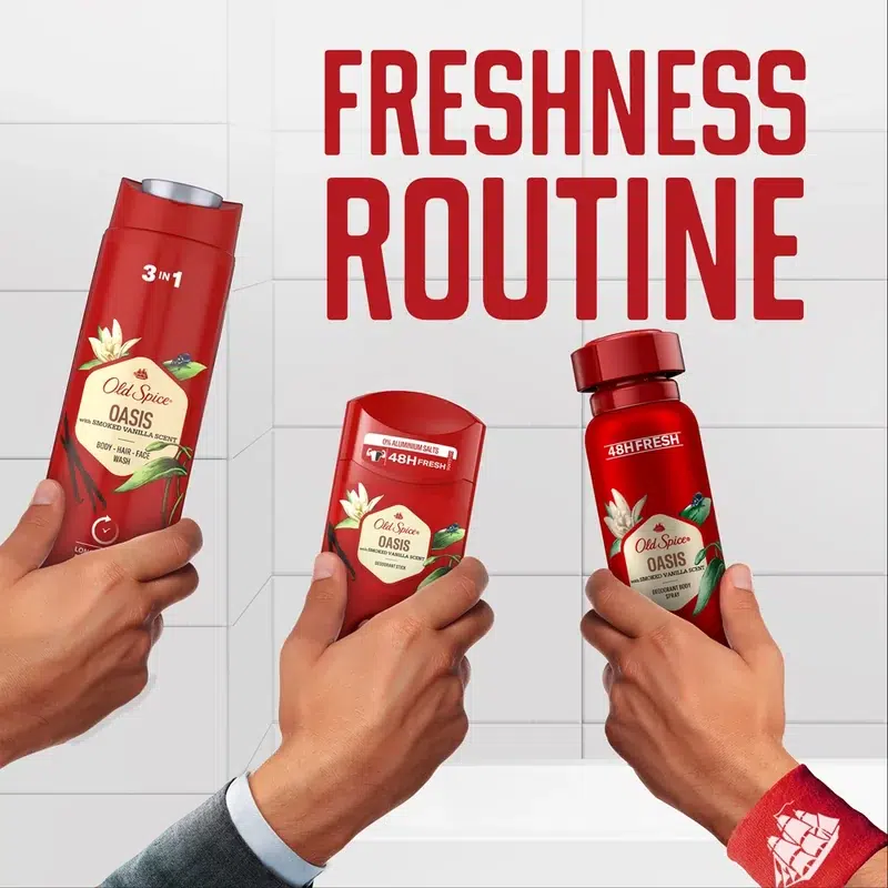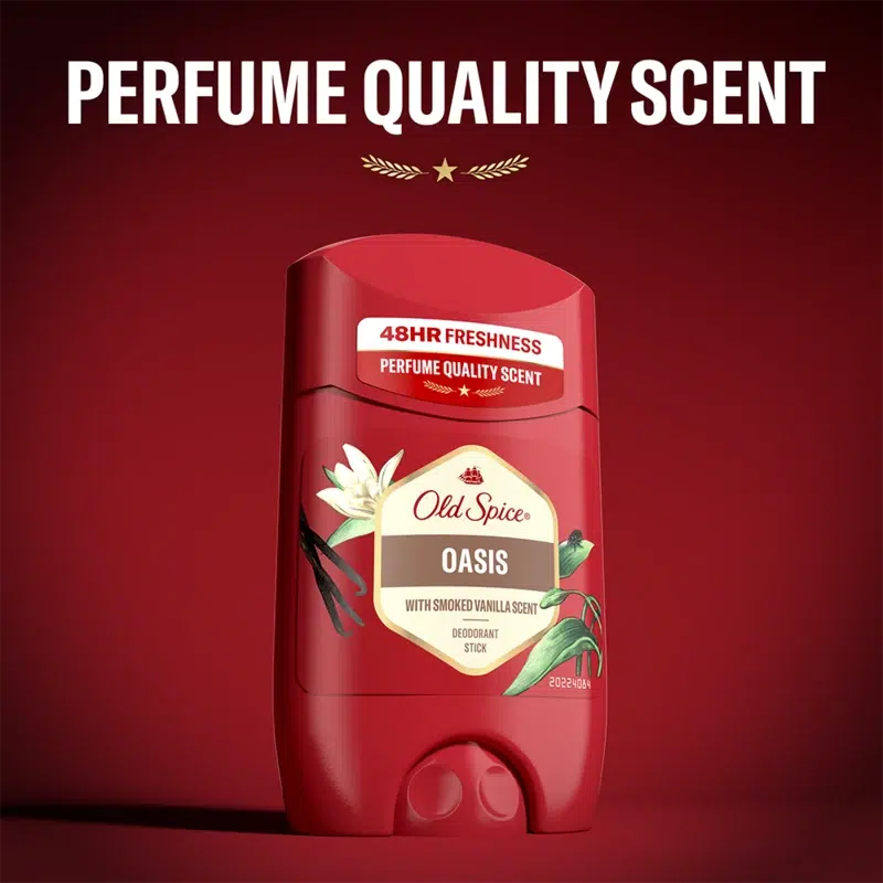 دئودورانت استیکی مردانه اولد اسپایس مدل Oasis – با رایحه وانیل دودی – فاقد نمک آلومینیوم | حجم 50 میلیلیتر
