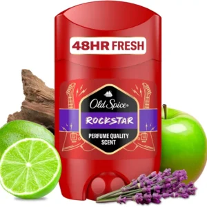 استیک دئودورانت Old Spice Rockstar با رایحهای انرژیبخش و مردانه، برای افرادی طراحی شده که میخواهند در جمع بدرخشند. ترکیب نتهای لیمو ترش، سیب سبز، چوب صندل و اسطوخودوس، رایحهای متعادل بین طراوت و گرمی ایجاد کرده است. این محصول حس تازگی و جذابیت را تا 48 ساعت حفظ میکند.