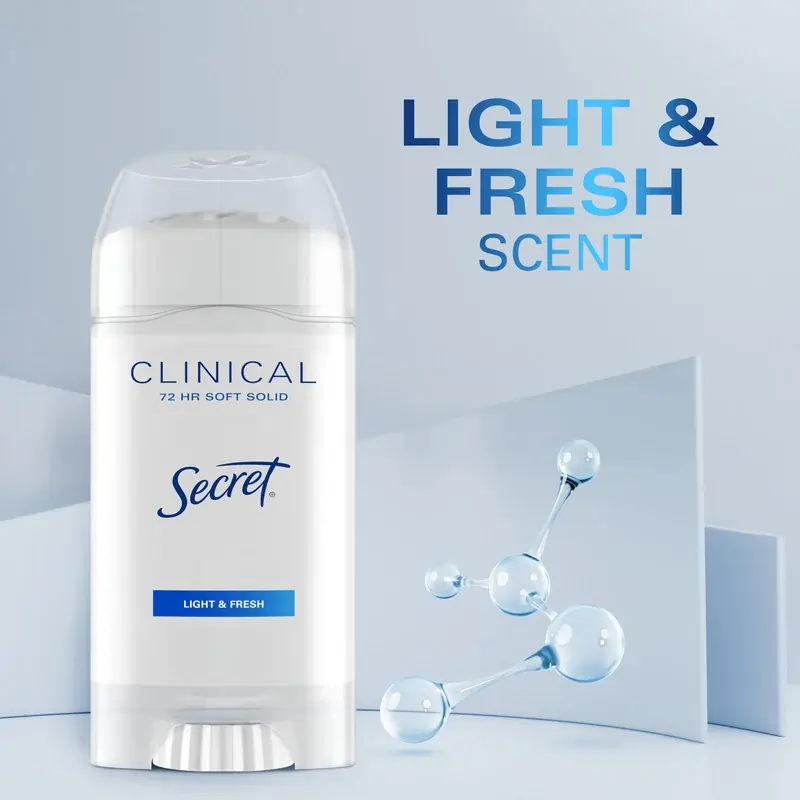 مشخصات استیک ضد تعریق کلینیکال سکرت Secret مدل Light & Fresh – محافظت 72 ساعته | وزن 45 گرم
