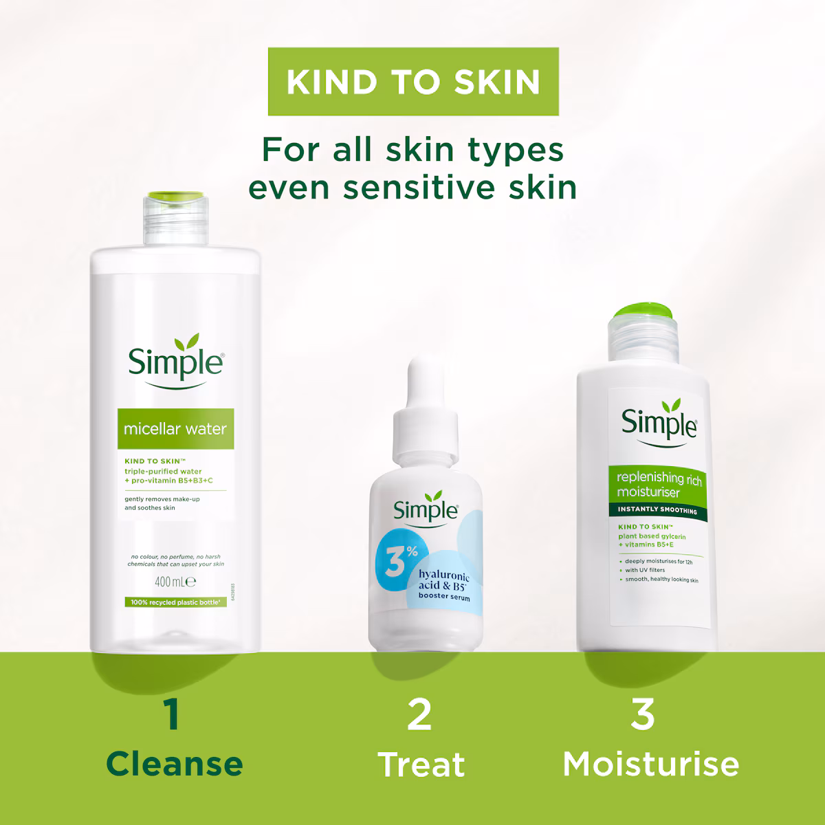 برند سیمپل (Simple) با تمرکز ویژه بر تولید محصولات مراقبت از پوست حساس، فرمولاسیونی ساده، پاک و عاری از مواد محرک مانند عطر و رنگ مصنوعی ارائه میدهد. این برند تمامی محصولات خود را تحت آزمایشهای بالینی متخصصین پوست و چشم تولید میکند تا ایمنی و اثربخشی آنها تضمین شود. همچنین با تعهد به پایداری محیطزیست و استفاده از بستهبندیهای قابل بازیافت، انتخابی مطمئن و دوستدار طبیعت برای مراقبت روزانه از پوست به شمار میرود.