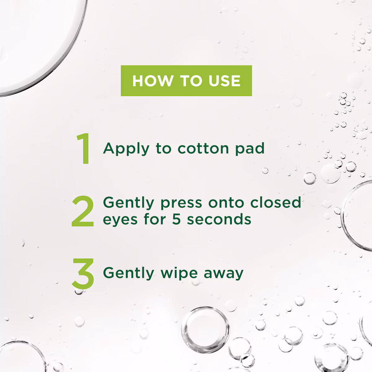 - پد را بهآرامی روی پوست صورت، چشمها و لبها بکشید.