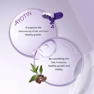 - بیوتین (ویتامین B7) – تقویتکننده ساختار مو، افزایش ضخامت و جلوگیری از شکنندگی.