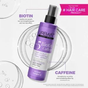اسپری تونیک مو «Urban Care Expert Series Biotin & Caffeine Hair Tonic» محصولی حرفهای و علمی برای مراقبت از مو است که با هدف تقویت ریشه، کاهش ریزش مو، افزایش ضخامت و تحریک رشد طبیعی موهای جدید طراحی شده است. این محصول از ترکیبی متعادل از بیوتین، کافئین و منتول بهره میبرد و با فرمولاسیون وگان و بدون تست حیوانی تولید شده است.