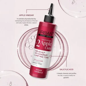 - ضد شوره پیشرفته – کاهش پوستههای ناشی از شوره و جلوگیری از بازگشت آن با ترکیب سرکه سیب و سالیسیلیک اسید.